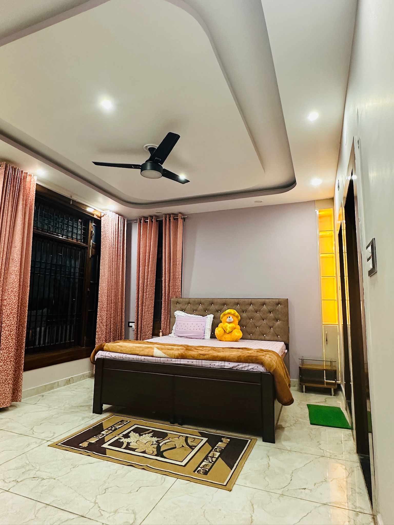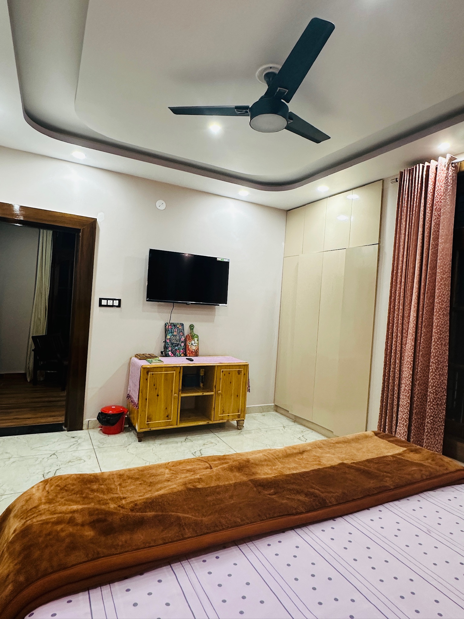 Guests can enjoy amenities such as high-speed Wi-Fi, a smart TV, ample storage space, and a well-maintained attached bathroom with essential toiletries. A charming seating nook by the window offers the perfect spot to sip morning tea, read a book, or simply soak in the peaceful surroundings.